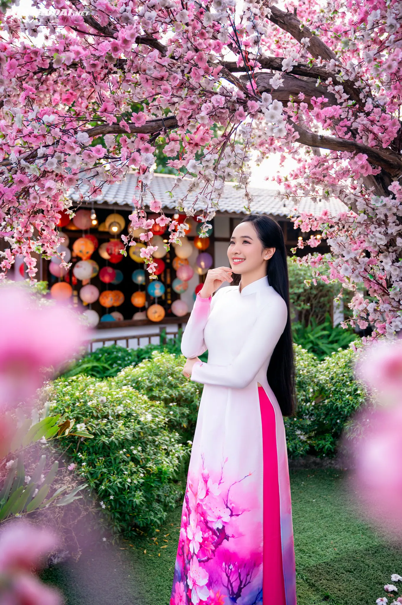 Không chỉ hợp với Gen Z mê sống ảo, Sunny Garden còn là “điểm hẹn” của những bạn yêu áo dài. Hình ảnh tà áo dài truyền thống nổi bật trên nền kiến trúc ngói cổ tạo nên cảm giác rất điện ảnh. Nhiều bộ ảnh được chia sẻ trên mạng xã hội cho thấy sự kết hợp này vừa mang tinh thần Tết vừa không bị cũ hay nặng tính truyền thống.